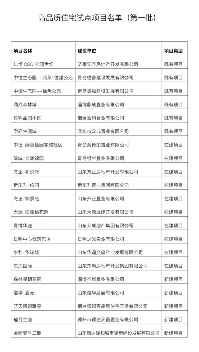 21个项目先行!山东首批高品质住宅试点项目公布