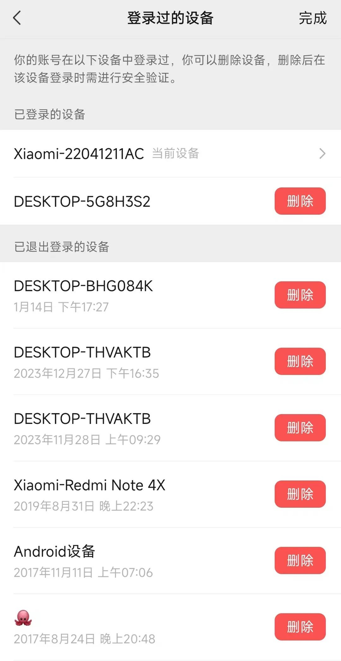 删掉过往的登录设备