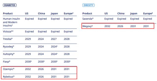 尽管司美格鲁肽被誉为降糖领域的“神药”,然而它当前正深陷一场“内忧外患”的风暴之中。一方面,Ozempic、Rybelsus和Wegovy等明星产品在中国市场的专利将于2026年到期,这无疑给公司未来的收益蒙上了一层阴影;另一方面,来自礼来的替尔泊肽等竞争对手的虎视眈眈,也让司美格鲁肽的市场地位岌岌可危。