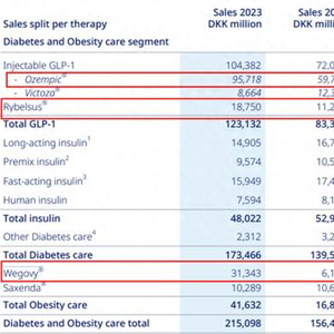 然而,在罕见病产品领域,诺和诺德遭遇了些许挫折,总收入约为171.63亿丹麦克朗,约合24.96亿美元,同比下滑了16%。这或许提醒着市场,即使是医药巨头,也需要在不同领域持续投入和创新,才能保持全面的竞争优势。