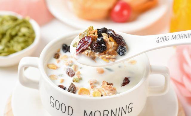 牛奶燕麦粥:将燕麦片浸泡后,加入牛奶焖煮约20分钟,搭配坚果、水果等,可作为早餐。