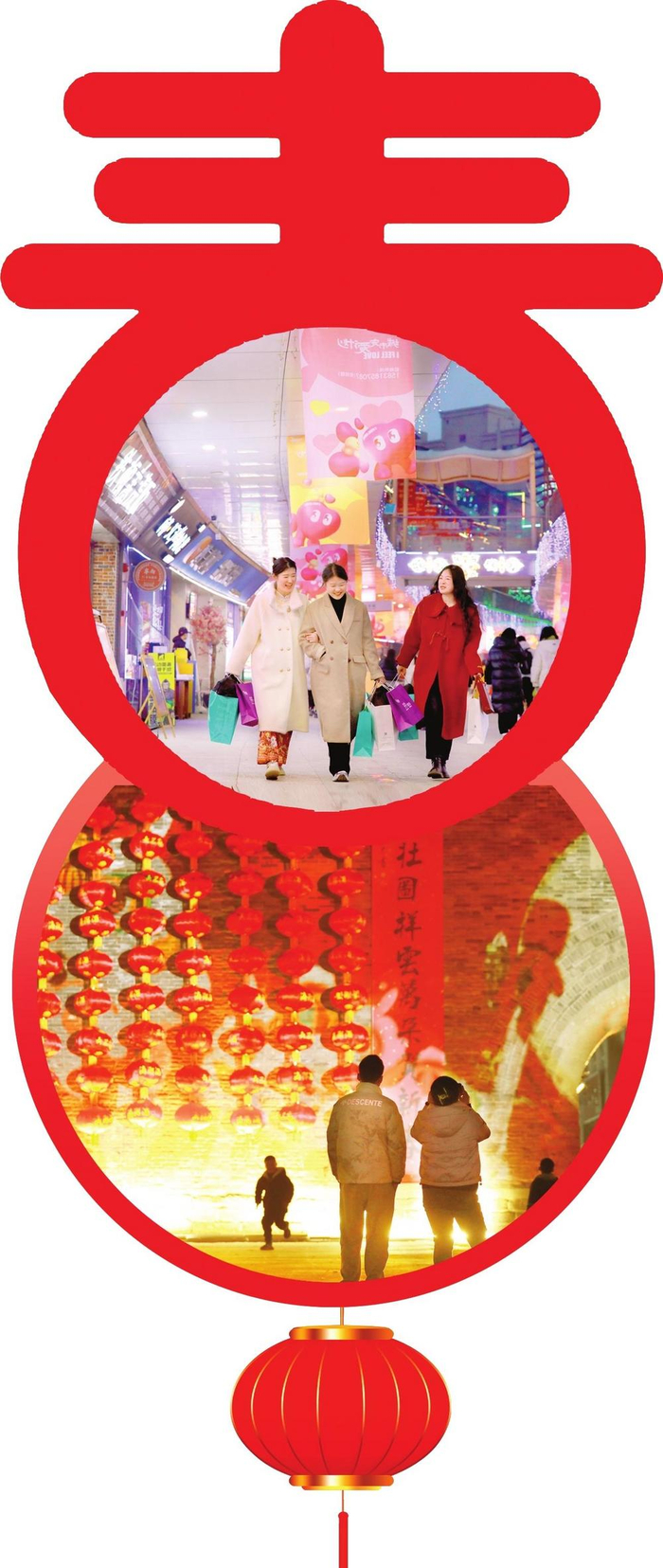 这个春节,被大名人熟知的吃喝玩乐购一体化场所还有该县规模数一数二的商业综合体——宣和时代广场。除了商场内部原有的经营业态外,春节假期,宣和时代广场打造了年货一条街,近百家特色小吃、鲜花年货等店铺满足群众节日期间采购、娱乐。招商运营经理侯明艳介绍:“我们在商场内外还增添了龙年元素,营造出浓郁喜庆的氛围,让消费者处处感受到春节文化。”