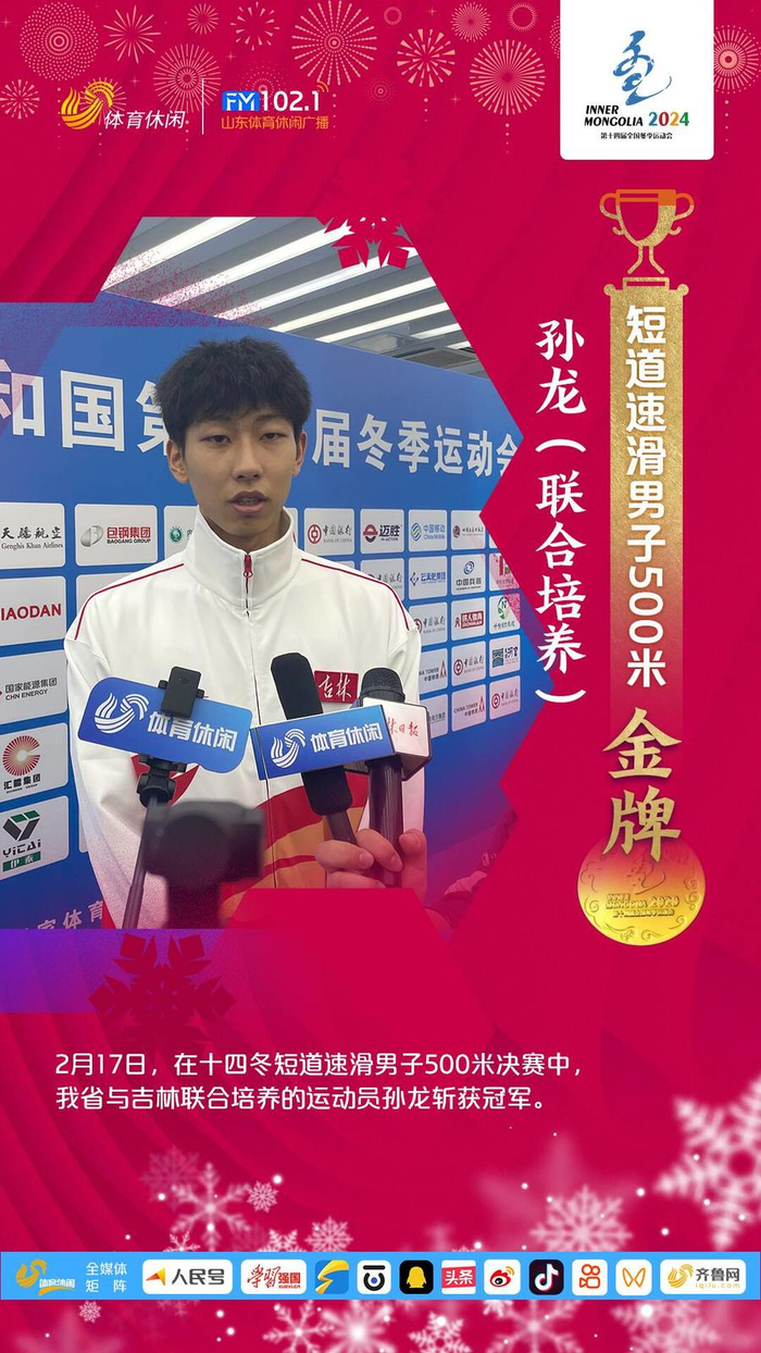 山东再添一金!孙龙斩获十四冬短道速滑男子500米冠军
