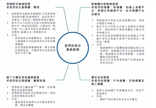 据了解,作为综合营销服务商,壹九传媒通过提供视频及音频节目以及公关活动等不同形式的内容,为企业提供形式多样的营销服务。