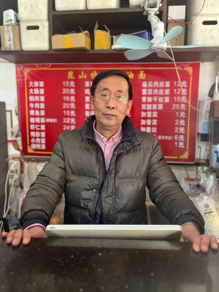 我去的面馆,在本地很有客源,最闹猛时,一天能卖出两千碗面,几乎可与任一家老字号别苗头。面馆开在同丰路上,所以叫同丰饭店,老板则叫洪刚,五十五岁,原本是昆山北郊外的村里人。上世纪八十年代末,他从乡镇进城务工,又赶在九十年代初的建设发展潮里,卖屋举债,下海开起饭店,至今有三十一年了。
