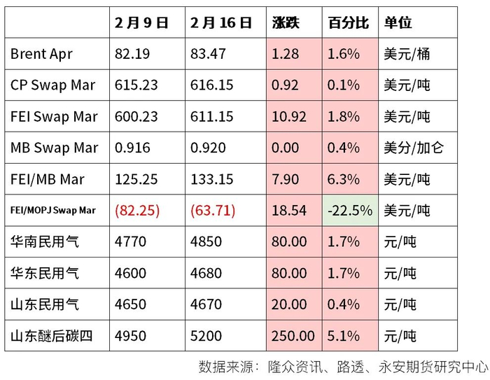 LPG:春节期间LPG国内外市场均出现不同程度上涨,具体数据见以下图表。