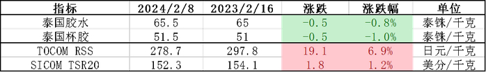 春节假期期间,泰国原料价格微跌,但绝对价格在很高的水平;新加坡和日本盘面均有上行,其中日本盘面上涨幅度较大。