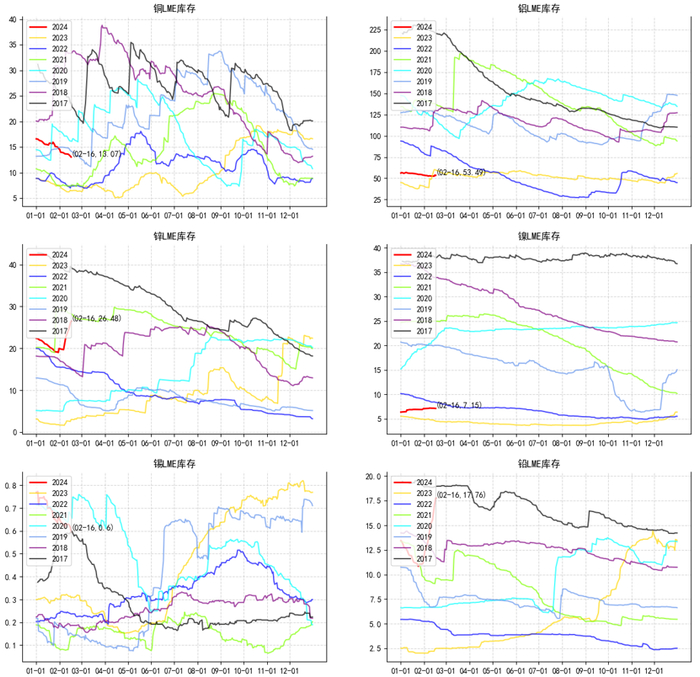 镍:春节期间,LME镍价呈现震荡上行走势,2月17日收盘16350美元/吨,较节前小幅上涨1.36%。库存方面,LME镍库存微降756吨至71544吨。供需方面,国内纯镍产量维持同比偏高状态,下游需求季节性走弱,预计节后社库进一步累库,且LME不断有国内企业注册交割品牌,预计后续出口交割量仍将维持。消息方面,当地时间2月14日,印度尼西亚举行总统选举,现任国防部长普拉博沃·苏比安托搭档总统佐科长子、梭罗市现任市长吉布兰·拉卡布明·拉卡,赢得正副总统选举。竞选期间,除了继续维持佐科现代化努力外,他几乎没有做出任何具体承诺,因此他将如何执政仍不确定,在镍产业相关政策上预计延续在当地工厂进行加工,而不是出口原材料的理念。综合来看,印尼选举干扰短期落地,后续进一步跟踪,镍基本面预计延续过剩状态,预计价格维持弱势。