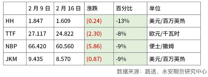 天然气:假期期间外盘天然气价格普遍下跌,美国亨利港天然气期货目前在历史低位。欧洲TTF价格下跌后热值价格与煤炭接近,具体价格变化见下。