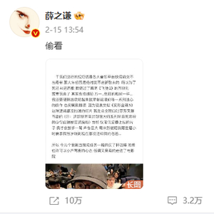 2月15日下午,歌手薛之谦发微博评论春节档电影《飞驰人生2》,并附有3张直接对着银幕拍摄的电影画面,引起部分电影从业者和影迷的公开谴责和抵制。