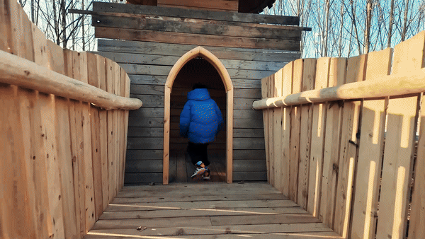 在神秘而迷人的尺木神奇世界中,穿越一片魔法森林,便可抵达尺木小镇。城堡亮丽神秘,由木桥相连,爬网、楼梯、攀岩支撑点构成多样攀爬设施,为孩子们打造理想的探索空间。各式滑梯更是助力孩子们快速回到地面,刺激好玩,仿佛瞬间回到童年。