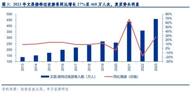 外来游客与日俱增,小摊铺蕴意大民生。其实从去年开始,外省牌照车辆自驾游显著增加,2023年文昌接待过夜旅客达460万人次。我的老家(龙楼)离海边并不远,大约开车10分钟的车程就能到淇水湾。过年回家和家人一起去海边,路上几乎可以看到全国各地牌照,以中西部城市居多,远至黑龙江和新疆,房车露营、海边烧烤等比比皆是。事实上除了假期,但凡恰逢航天火箭发射,驱车而来的游客就不在少数,堵车在这座航天小镇上也逐步司空见惯。与此同时,这也给文昌大家创收、居民小家就业带来更好契机:1)2023年是文昌全力推进航天城“加速跑”的关键之年,文昌国际航天城园区完成营收221.01亿元、固定资产投资63.22亿元,分别增长106.9%、43.5%。2)地摊经济成为老百姓谋生的新模式。除夕日到龙楼镇上购物,正好路过一个特色煎饼小摊,看到不少人排队购买也便驻足跟老板娘闲聊一番。老板娘家在外省,来文昌打工生活已有三年多,今年过年夫妇两人也没有回家。问其原因却是想抓住春节假期旅客游玩的窗口做好生意,自打龙楼航天小镇建设以来,往日里沿街商铺和摆摊的人气都很旺,这其实超我预期。大年初四,文南老街的沿街摊铺和文昌孔庙同样熙熙攘攘,沿途碰到两位重庆游客手写“旺溪茶店”来问路,老爸茶店更是一座难求。如今的老爸茶,不再是小时候简单的糕点和无限续杯,更融合了海南各地特色小吃,看着一家家老爸茶店兴隆开张,既为“老爸茶”文化能被广为接受而感到欣喜,但也时常思考如何更高效、更贴切地提高茶店、摊铺的服务质量,这或许是打造魅力航天小城更为关键的一步。