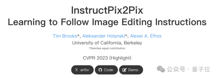 回到校园后,Tim与导师Alexei Efros教授、同组博士后Aleksander Holynski(现在谷歌工作)一起研制了AI图片编辑工具InstructPix2Pix,并入选CVPR 2023 Highlight。