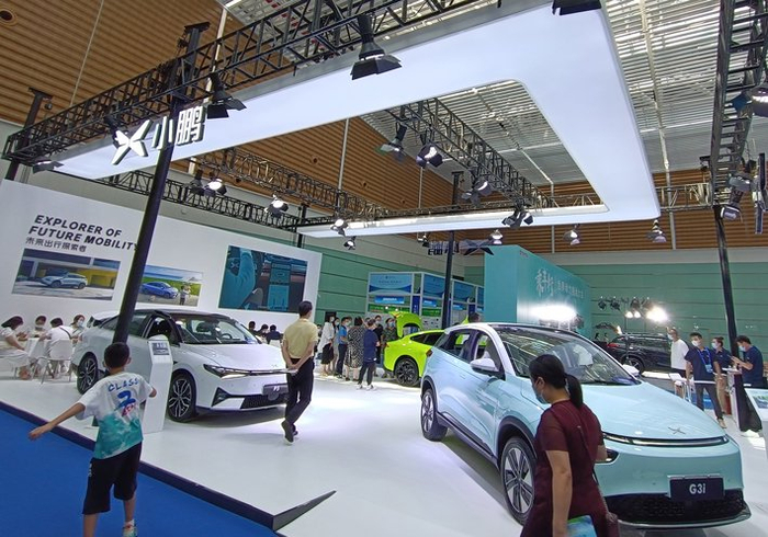 2024年,小鹏汽车的销量目标为28万辆。不过,公开资料显示,2023年,小鹏汽车的销量为14.1万辆,仅完成了当年目标的约70%。图为小鹏汽车展台 每日经济新闻资料图