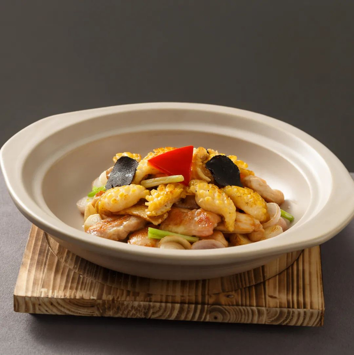 春节餐桌上的鸡最好是整只的鸡,烧鸡便成了首选。整只烧鸡端上餐桌,不便下筷,于是,家庭主妇们便会将整鸡撕开拆散,将最能体现整只鸡的鸡头、鸡腿部分完整保留,在装盘时组摆成成鸡的形状,方便大家下筷食用。还有一种脱骨扒鸡也是可以整只端上的,因为它用筷子即可拆散食用,所以脱骨扒鸡也是许多人家的选择。除了这种可整只端上的鸡之外,还有许多以鸡肉为食材的菜,如焖鸡块、辣子鸡、芙蓉鸡片、宫保鸡丁等也是春节餐桌上的常客。