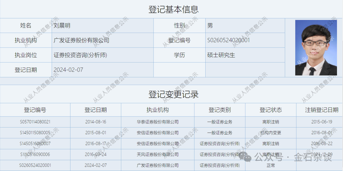2月16日,刘晨明在个人微信公众号官宣加入广发证券研究发展中心,担任首席策略分析师一职。