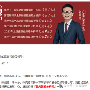 在沉寂了近2个多月之后,原天风证券首席策略分析师刘晨明正式官宣履新,转任广发策略首席分析师。
