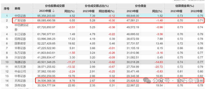 体现在实实在在的收益上,广发证券中报的分仓佣金有4.76亿,位列行业第三;而天风证券2023年中期分仓佣金是2.59亿,明显存在劣势。