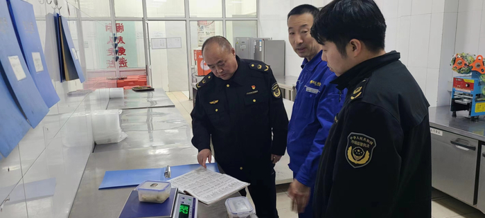 检查中,执法人员仔细查看了职工食堂食品经营许可证有效期限,从业人员健康证是否在有效期内;节前储存的原辅料是否在有效期内,对食材采购、索证索票、进货查验、食品储存、食品制作、留样等全过程进行了全面规范;询问了一日三餐职工就餐人数及晨检情况。同时对企业职工食堂负责人强调要压紧压实食品安全主体责任,加强对从业人员的管理和培训。指导企业职工食堂加强管理,倡导“光盘行动”制止餐饮浪费现象发生。