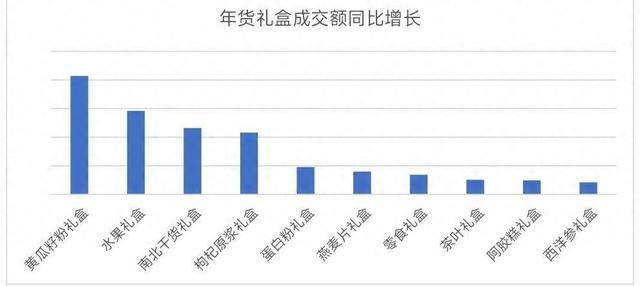黄瓜籽粉、枸杞原浆、阿胶糕、西洋参等营养保健品礼盒的热度提升显著,春节期间,黄瓜籽粉礼盒、枸杞原浆礼盒成交额同比增长超2倍,蛋白粉礼盒成交额同比增长96%,阿胶膏礼盒、西洋参礼盒成交额同比增长40%以上。食材类年货消费上,亚麻油、山茶油、稻米油等高营养食用油的成交额同比涨幅显著。零食上,消费者越来越关注零食的健康化、功能化。儿童零食上,含有亚麻籽、DHA、高钙成分的零食受欢迎,亚麻籽饼干、高钙奶酪饼干的成交额分别同比增长超10倍、105%;年轻人更爱低糖低脂类零食,坚果、含维生素的果干、鸡胸肉干等低脂低糖类零食的成交额同比增幅均超100%;此外,红枣黑芝麻丸成交额同比涨幅超9倍,茯苓八珍糕、无糖黑芝麻酥成交额同比增长均超2倍。