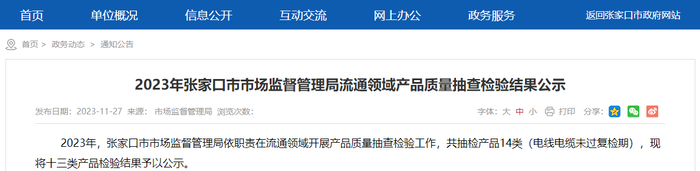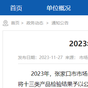 2023年河北省张家口市市场监督管理局流通领域小家电产品质量抽检结果公示