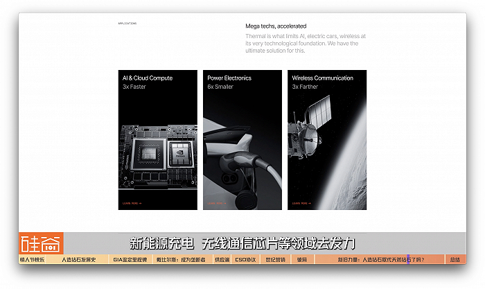 类似的,小李子莱昂纳多·迪卡普里奥在2005年拍完《血钻》之后投资的人造钻石公司Diamond Foundry也从早期的培育珠宝级钻石转型改为了培育高精制造工业级钻石,包括AI和云计算芯片,新能源充电,无线通信芯片等领域去发力,而他们的网站主页一句未提珠宝钻石培育。