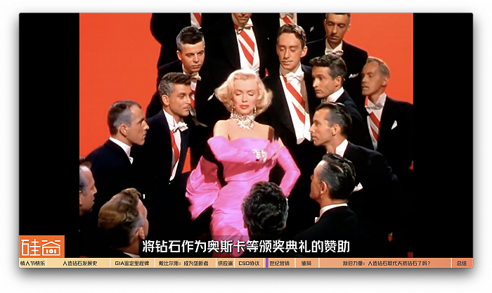 于是在1948年,”A Diamond is Forever”,翻译过来就是大家熟知的““钻石恒久远,一颗永流传” 广告系列开始被大范围推向市场,在广告和各种电影中,男士购买钻石送给喜极而泣、沉浸在爱河中的心仪女性,由此,爱情这个人人都向往的无价之宝与有价的钻石,强绑定在了一起。