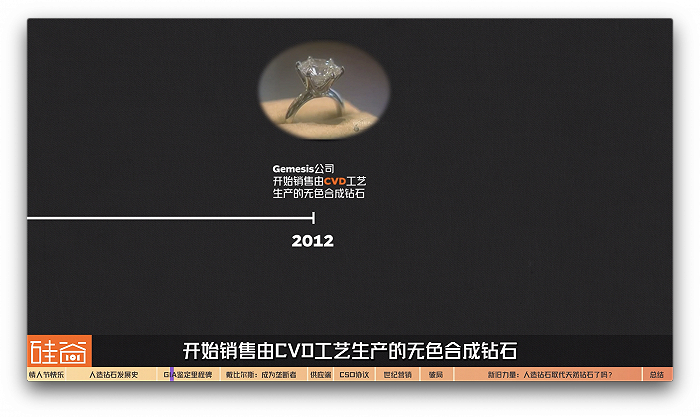 于是,2012年3月,位于美国佛罗里达州Sarasota城市的Gemesis公司开始销售由CVD工艺生产的无色合成钻石。