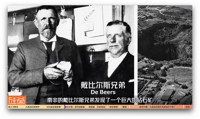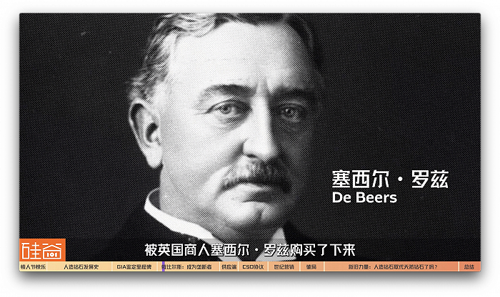 1871年,南非的戴比尔斯兄弟发现了一个巨大的钻石矿,而很快,就以6600英镑的价格被英国商人塞西尔·罗兹购买了下来。17年后的1888年,罗兹主导的戴比尔斯联合矿业成立了,在当时英国殖民政府的支持下,开启了不断吞并其它钻石矿来垄断市场的钻石资本战。
