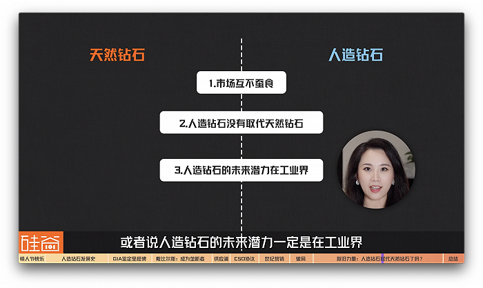1)人造钻石和天然钻石是两个不同的市场,可能有重叠,但目前主流消费人群并没有重叠太多;