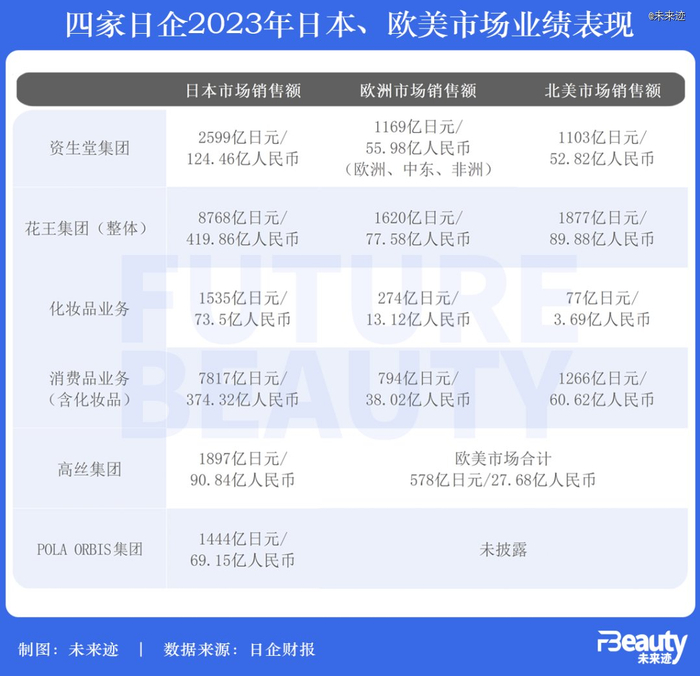 除了夯实中国主力市场,一个有意思的现象是,四家日企也在积极向欧美市场拓展,向全球型美妆企业迈进。