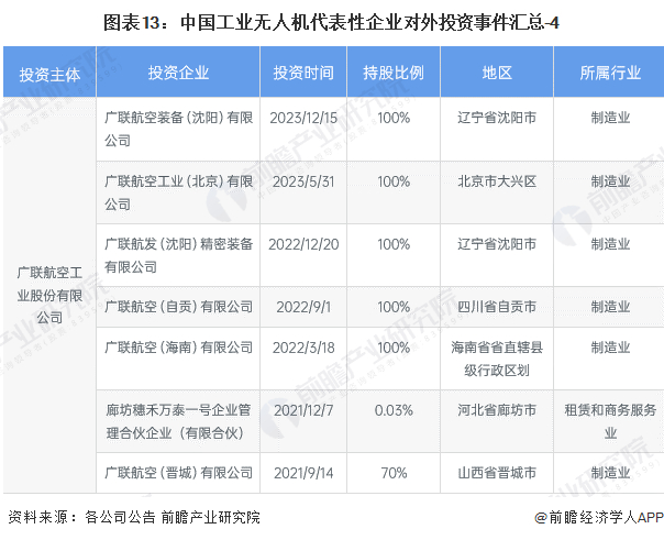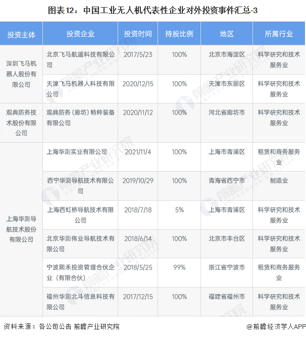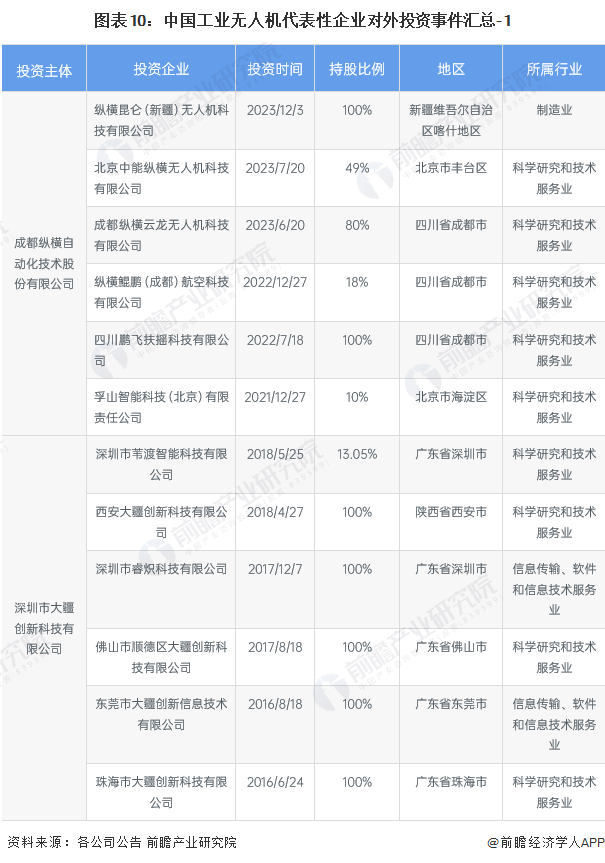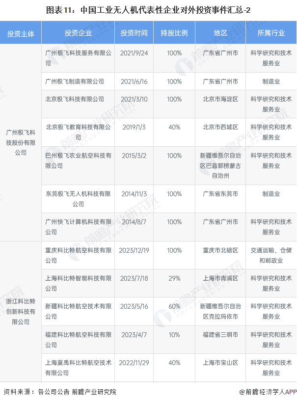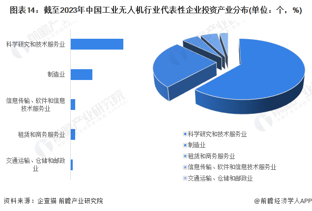 从工业无人机代表性企业近年来的对外投资赛道情况可以看出,投资科学研究和技术服务业、制造业占据多数,工业无人机代表性企业以投资布局相关赛道扩展产业规模、加速无人机产品的更新迭代。