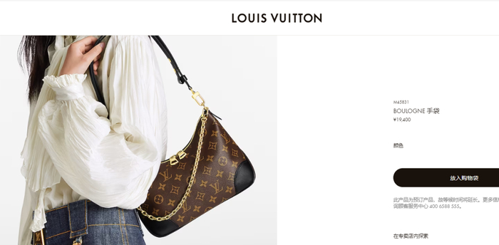 BOULOGNE手袋的上调金额为900元。Louis Vuitton官方显示,更新后BOULOGNE手袋售价1.94万元,而更新前为1.85万元。
