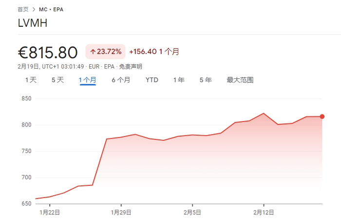 贝尔纳·阿尔诺的再次超越,一方面是因为特斯拉财报的不及预期,导致了其股价的下跌;另外一方面则是因为LVMH四季度营收的超预期增长,导致LVMH股价的大涨,阿尔诺家族财富暴增。