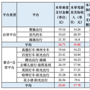 调查显示,自营平台的平均乘客支付金额为24.71元,平均驾驶员实际收入为19.88元,平均抽佣20%;“聚合+自营平台”的平均乘客支付金额为23.81元,平均驾驶员实际收入为17.78元,平均抽佣25%(以上按照“乘客支付总金额”计算得出)。