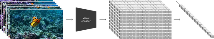 首先,研究人员将训练的视频素材压缩成为一个一个的“patches”小模块。