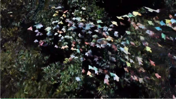 比如一大群纸飞机在树林中飞过,Sora知道碰撞后会发生什么,并表现其中的光影变化。