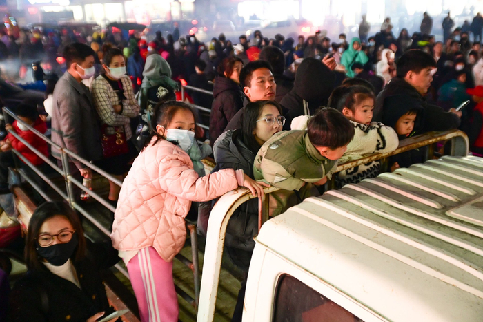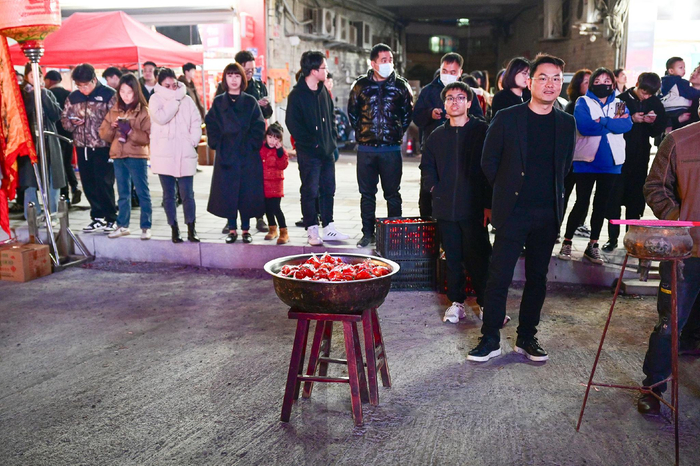 2024年2月16日,福州市长乐区金峰镇。等待游神队伍的人。