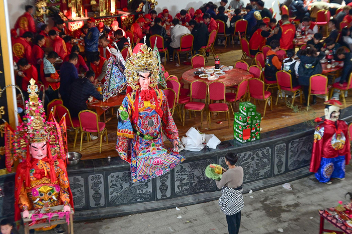 2024年2月17日,福州市长乐区岱灵村。村民正为神明擦拭。