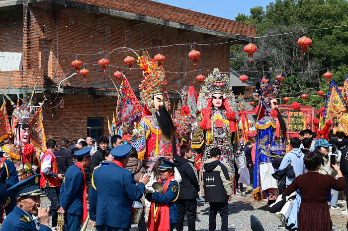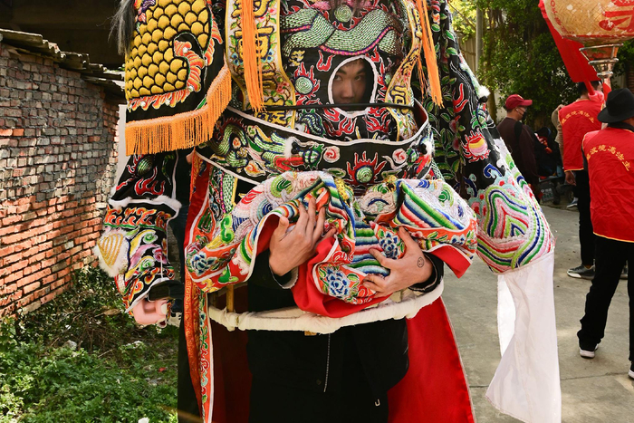 2024年2月17日,福州市长乐区岱灵村。神将走出祖厅。