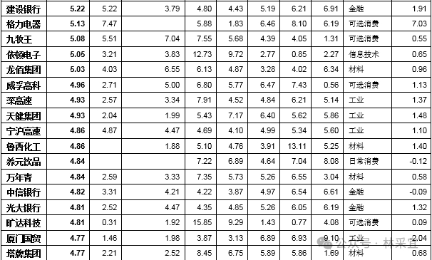 说明:剔除房地产和市值小于50亿的公司