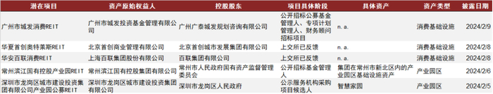 图表15:近期部分潜在REITs项目动态跟踪