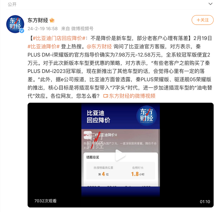 2月19日,#比亚迪价格# 登上热搜。