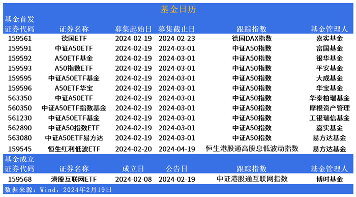 ETF发行市场方面,10只中证A50ETF今日起正式发售,第二只德国ETF也来了