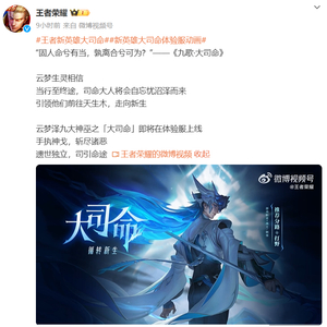 2 月 19 日消息,《王者荣耀》日前宣布,新英雄“大司命”即将在体验服上线,推荐分路为“打野”。
