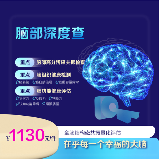 美年大健康推出脑部深度查——全脑结构磁共振量化评估[头部核磁需单独联系客服预约]。