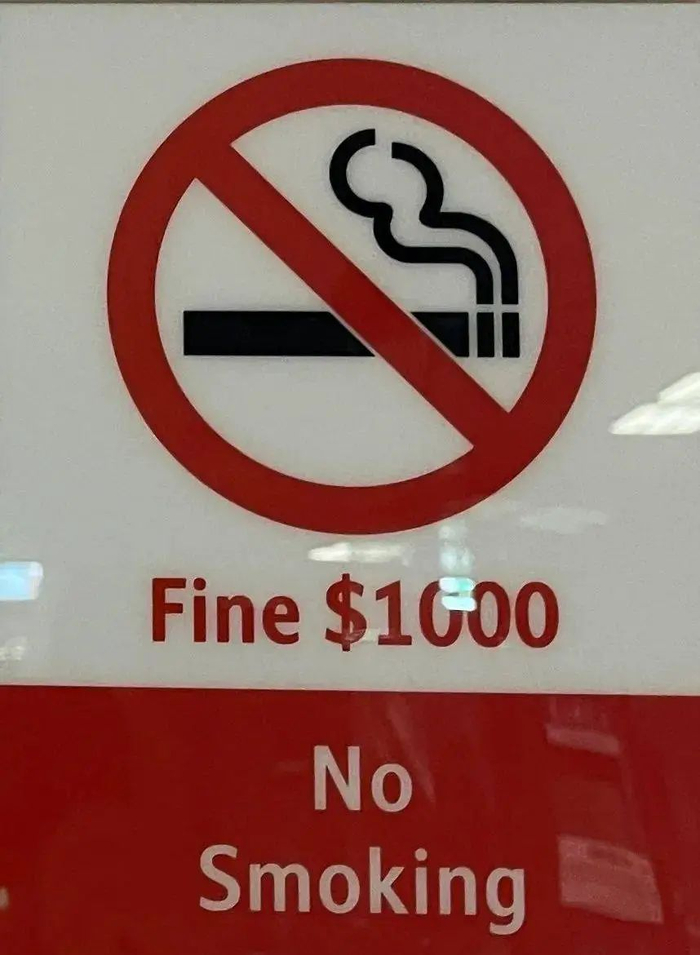 在禁烟区抽烟会被开罚单,然后痛失1000新币。