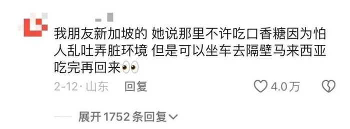 为了过口香糖的瘾,网传当地人都坐车到马来西亚吃完口香糖再回新加坡。