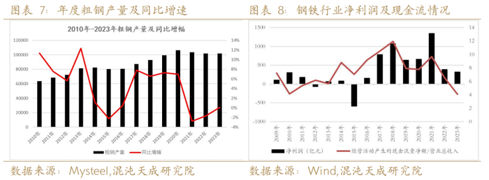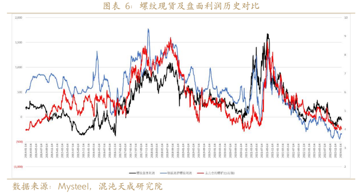 实际上,原料端对黑色产业链利润的挤压持续已久,只不过近几年的表现愈发极致。从近十年的螺纹现货及盘面利润历史对比来看,利润有明显改善的年份大多伴随供应端有明显的减量政策。比如2016年开启的供给侧结构性改革,计划用5年时间压减粗钢产能1亿-1.5亿吨,实际2016-2018年仅用3年就压减1.45亿吨表内产能,淘汰1.4亿吨地条钢,实现去产能总量超过2.85亿吨,同时也换来了钢铁企业在2017-2018年的持续高利润。