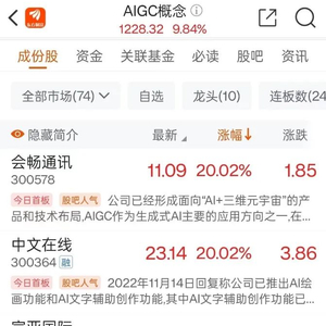 基于商用预期,A股AIGC概念股在龙年的首个交易日集体暴涨。包括当虹科技、万兴科技、因赛集团、易点天下等业务涉及文生视频的上市公司20CM涨停,而包括昆仑万维、拓尔思、首都在线之内的AI概念股也涨逾15%。
